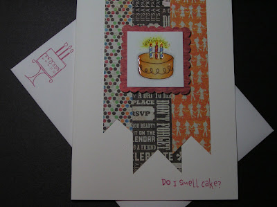 Here's another little card - a b-day week card for Creepella. Stamp is from Paper Smooches, cool B&T paper from CTMH, Memento & Colorbox Chalk Inks, Copics and a heart punch from Marvy were all that were needed to whip up this Iris-inspired card.